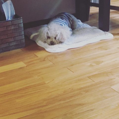 朝からおやつをいただいて、 あとは定位置に収まっている看板犬🐶