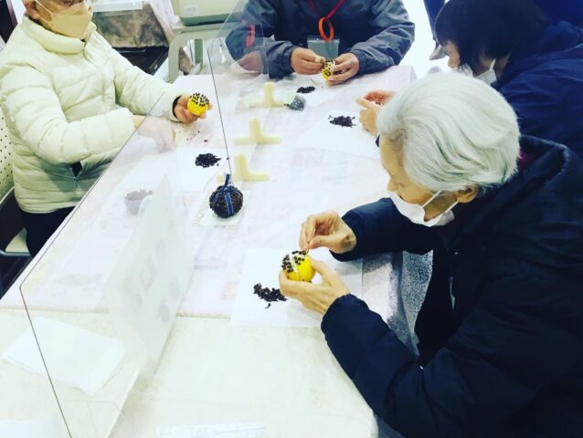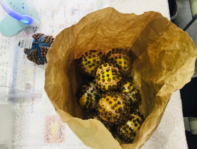 オレンジポマンダーの説明がどこまで皆さんの頭に入ったかはさておいて、作業に入ると先ほどまでのざわめきが嘘のように真剣に、ひたすらクローブを刺す😉