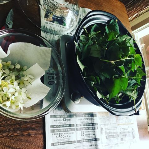 今日は仕事の合間にドクダミ葉の蒸留やってみた🌿