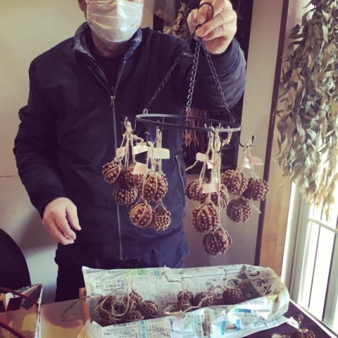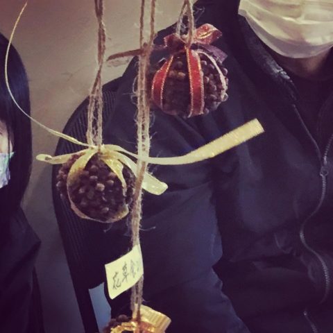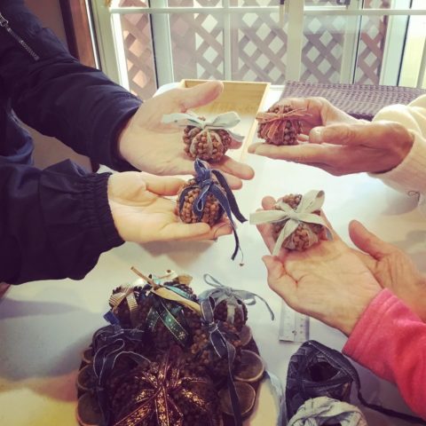 今日は予備に作ったポマンダーで、ハーブ園を管理していただいている遊水匠の会のK氏へのプレゼントを作って、花草会メンバーと新年のご挨拶に🙋♀️