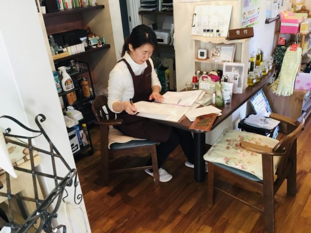 嬉しい言葉をたくさんいただき、トータルケア(午前はボディメンテ、午後は講座)のお客様がお昼休憩に行っている間、カルテに書き留め、しっかり次回に備えるとも。