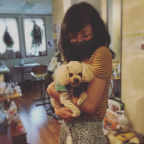 日本にいる時、アレグロを抱っこしてアメリカに残してきた「ももちゃん」のことを思い出していたそう🐶