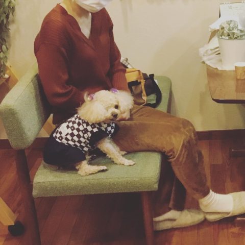 自主練に来ていたセラピストのお姉さんたちのお茶会にアレグロくんも参加🐶 お話にいつも混ざりたいアレグロくんです❤️