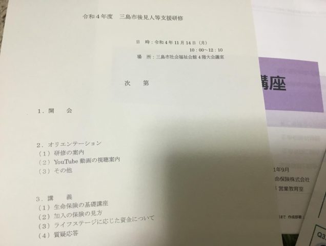 今日の午前は社協の成年後見研修で、生命保険の勉強でした。