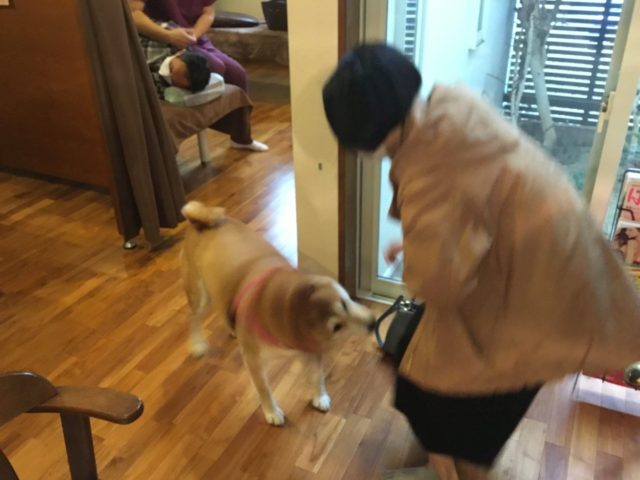 土曜日のわんこ!と言えば、整骨院の治療にみえる飼い主さんと一緒に来るミランちゃん。昨日久々にやってきてくれました。ちょうどサロンご予約のSちゃんと同じ時間帯でSちゃん大喜び!!サロンに入る前に癒されておりました。
