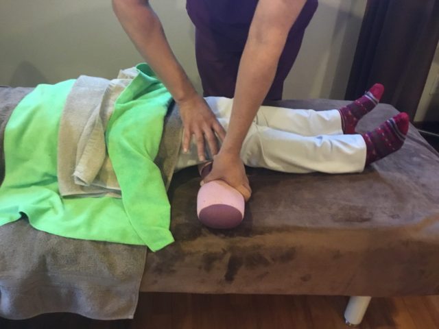膝が痛くて通院されている方も多いですね。少し痛みが緩和されてきて始めているのが筋力をつけること。院長がトレーニング法を丁寧に指導。とくら整骨院のお客様は真面目な方が多いのでしっかり家でもストレッチやトレーニングをやられているようです。