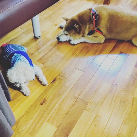 久々の土曜日のわんこたち🐕 ずっと雨だったのでご主人さまたちだけの来店でしたが、 今日は晴れで久しぶりのミランちゃん☀️ 外は暑いけど、中は涼しくてアレグロとすやすや😪