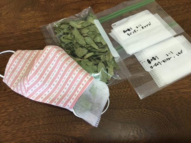 抗菌、抗ウィルス作用があると言われるユーカリをマスクにしのばせる