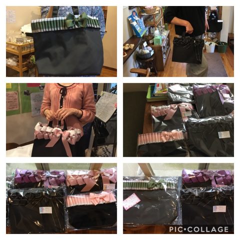 生徒さんの手作りリボンバッグが人気!!