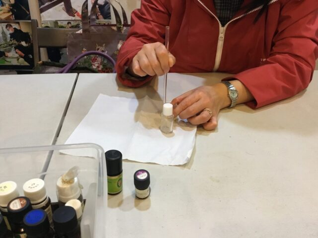 この香りは、水曜日の夜のアロマ対策講座第6回(最終回)の実習でNさんが作った自然香水の残り香✨
