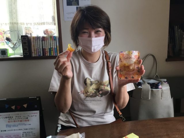 レッスン後に、Mさんが作った(TOKURAのオレンジ)オレンジピールで一息。