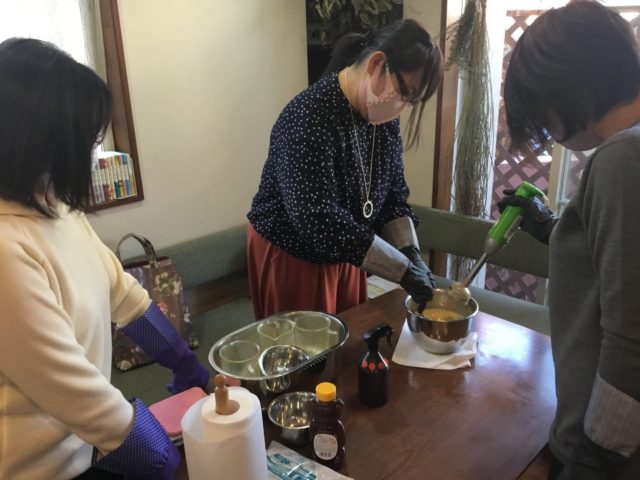 昨年秋に入学された3名が石鹸基礎講座を受講。