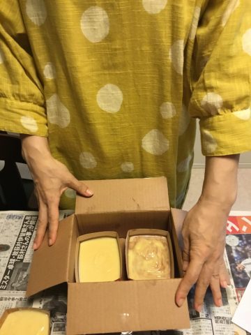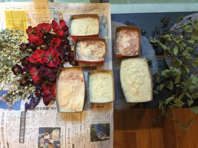 お一人はラベンダー精油入り石鹸をお一人がクレイ入りさっぱり石鹸を担当。ただ今熟成中!!