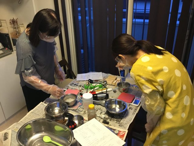 仕事帰りにお二人で石鹸づくりにいらしたA様(清水町)、U様(沼津市)