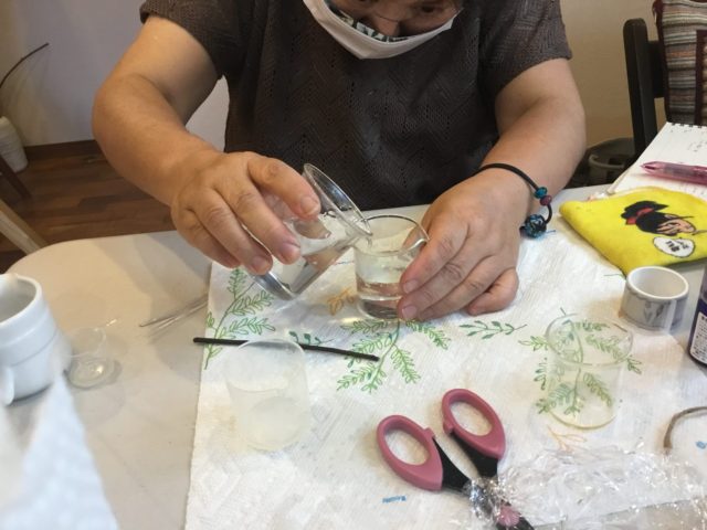 アロマテラピー対策講座受講中のHさん。蒸留、クリームづくりなど、実践で学ぶことができました。