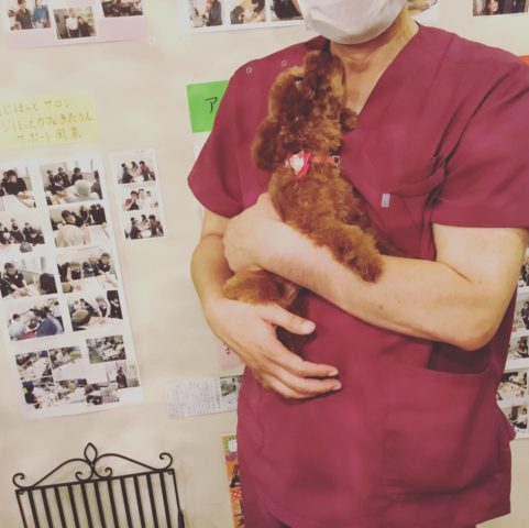 一緒に治療に来ていたお友達のSちゃん 院長、ベルちゃんと可愛いバレリーナちゃんたちに囲まれてデレデレ。