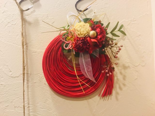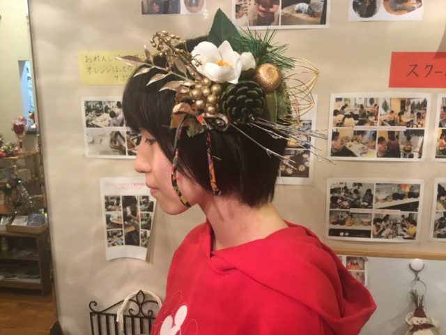 夜7時予約のママのフェイシャルと娘ちゃんのボディメンテナンスが終わり、ママが午後の講座で作ったお正月飾りを、、