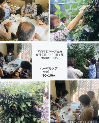 というわけで、本日のアロマ&ハーブcafeクラフト部は、本来の「不織布で作る簡単ハーブボールづくり」の後、TOKURAのお庭へGO👍