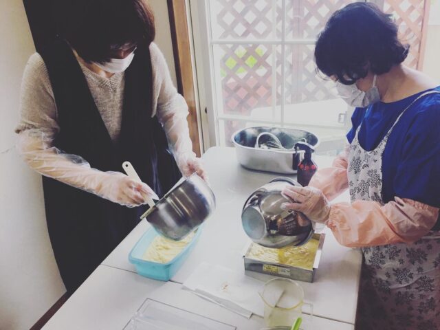 マスク、ゴーグル、手袋、窓全開放でつくるマルセイユ石鹸🧼