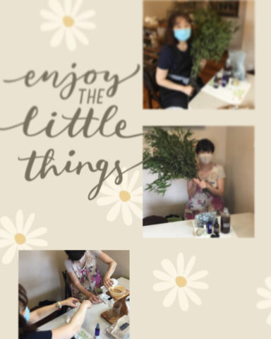 Mさんもハーバルセラピストコースアロマテラピー対策講座ハーバルケアトリートメント認知症ケア&ハーバルケアサポーター講習全てを学ぶハーバルケアトータルコースのお一人。この日はトリートメントレッスンの初日。レッスン後に、Mさんが作った(TOKURA...